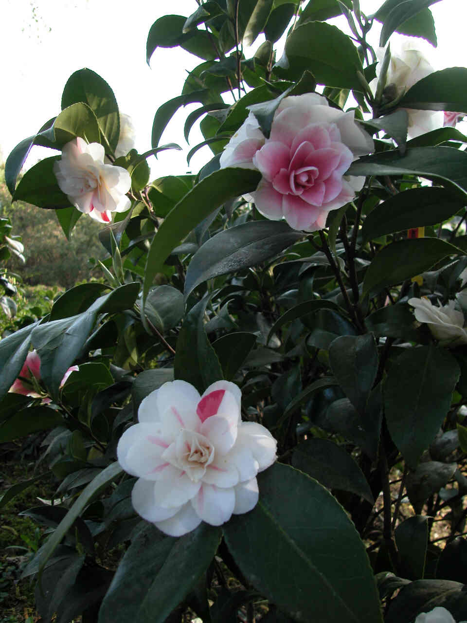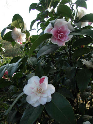 Blütenmehrfarbigkeit macht den Reiz dieser Kamelie aus.