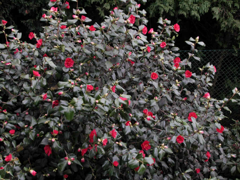 Hecke als auch als solitärer Busch sollte diese Kamelie in keiner