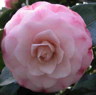 regelmäßig gefüllt, Blütenblätter innen Weißrosa, außen Zartrosa, 8 – 9 cm
