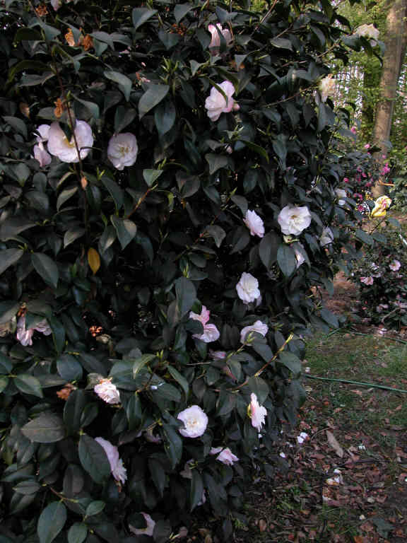Eine buschig und kompakt wachsende Kamelie mit relativ