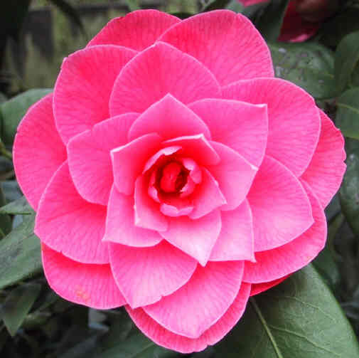 Glänzend rosa, vollständig gefüllt, Blütendurchmesser 7–10 cm, Blütezeit: